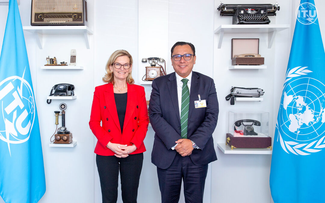 El Ministro de la Producción del Perú, Sergio González, acompañado por el Representante Permanente del Perú en Ginebra, Embajador Luis Chuquihuara, sostuvo una reunión de trabajo con la Sra. Doreen Bogdan-Martin, Secretaria General de la Unión Internacional de Telecomunicaciones (UIT) y coincidieron en la importancia del uso de la ciencia, tecnología e innovación en el proceso de fortalecimiento de las micro y pequeñas empresas.