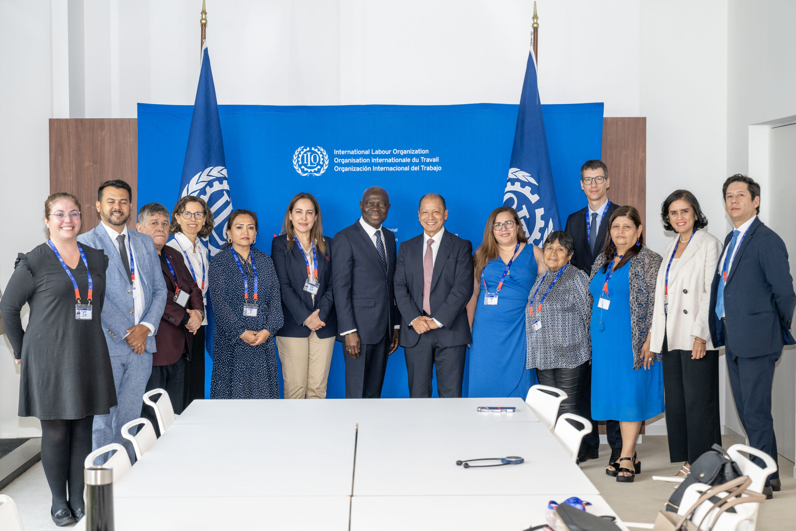 El Ministro Maurate asistió al encuentro bilateral junto a su equipo del MTPE, representantes de Cancillería y de la Misión Permanente del Perú en Ginebra. Al finalizar la reunión, se invitó a los miembros de la delegación peruana tripartita acreditada ante la 113.ª CIT #CIT2025 a un saludo con el Director General de la OIT.