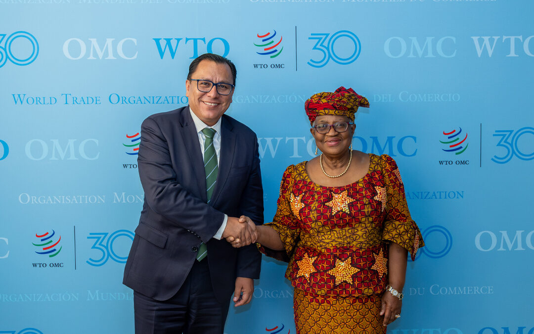 En diálogo con la Dra. Ngozi Okonjo-Iweala, Directora General de la OMC, el Ministro de la Producción, Sergio Gonzáles, acompañado por funcionarios de la Misión del Perú ante esa Organización enfatizó la importancia del comercio digital para modernizar y desarrollar las MiPYMES peruanas.